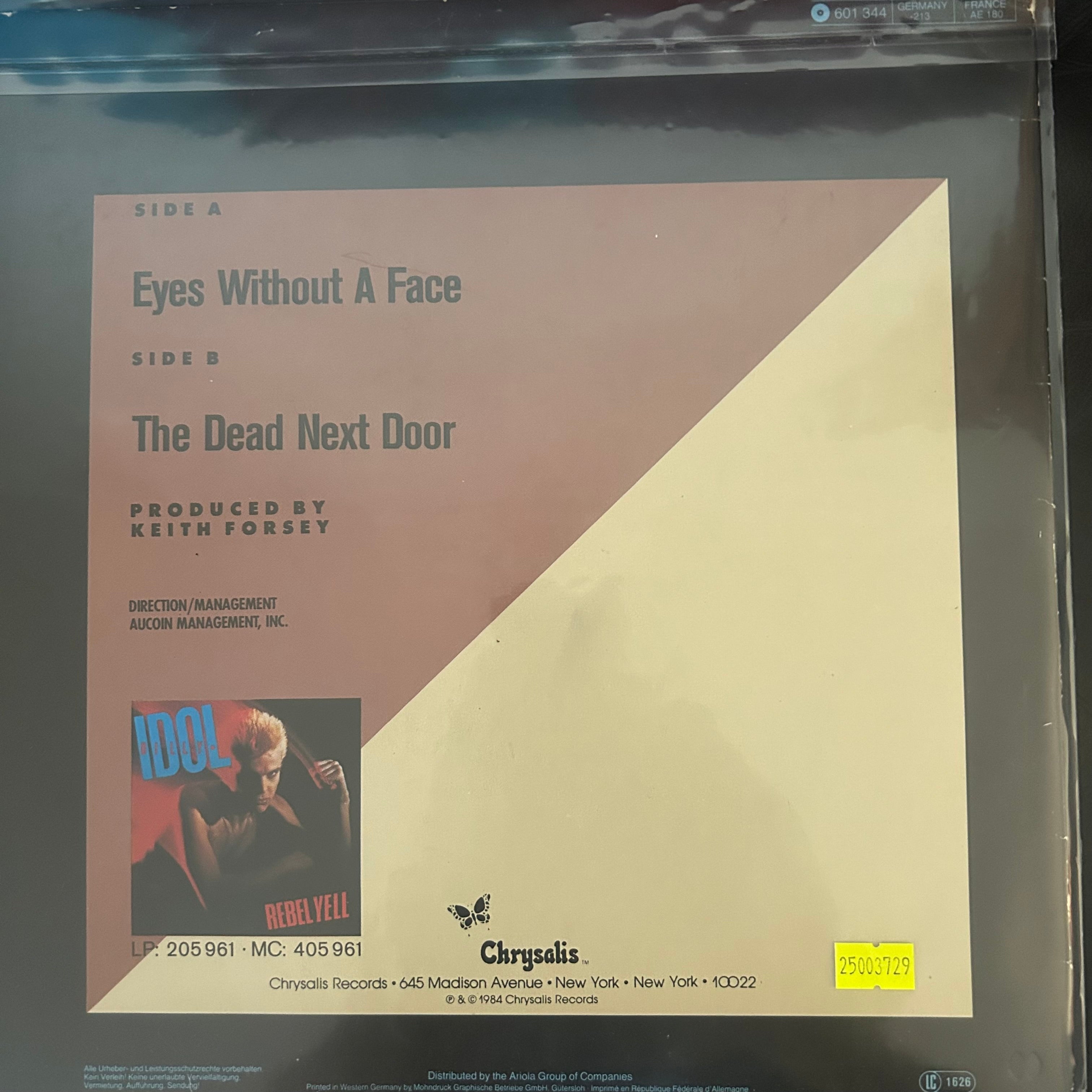Eyes Without a Face stands as one of Billy Idol's most compelling works from the 1980s new wave movement. This dark, atmospheric single showcases Idol's distinctive vocal delivery over brooding synth-driven production that defined the era. The track's moody instrumentation and introspective lyrical themes made it a defining moment in his career, resonating with audiences who appreciated the genre's blend of electronic textures and raw emotional intensity. A quintessential piece of 80s alternative rock that remains influential among collectors of new wave and post-punk vinyl.