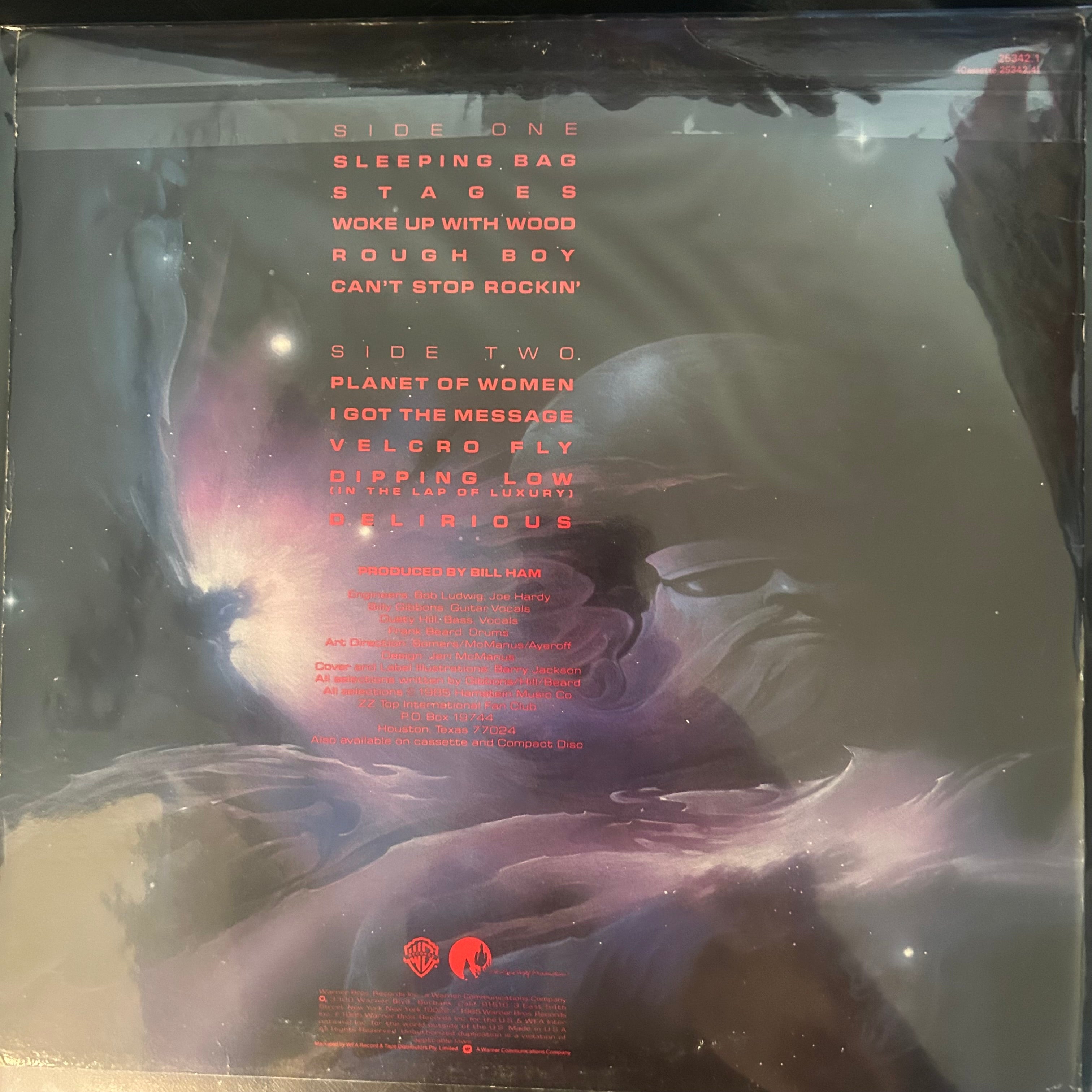 Slick, swaggering, and turbo-charged for the ’80s — Afterburner (1985) finds ZZ Top blasting blues-rock into the stratosphere with synths, sequencers, and space-age swagger. The beards went futuristic, and the riffs followed. Featuring radio-ready hits like “Sleeping Bag,” “Stages,” and “Velcro Fly,” this album keeps the Texas attitude alive while embracing glossy, neon-lit production. Billy Gibbons’ guitar still growls, Dusty Hill locks the groove, and Frank Beard powers it all forward — modern polish, classic boogie soul. Clean vinyl, arena-sized hooks — a must-spin for fans of ’80s rock evolution and that unmistakable Lone Star strut. Turn it up and take off.