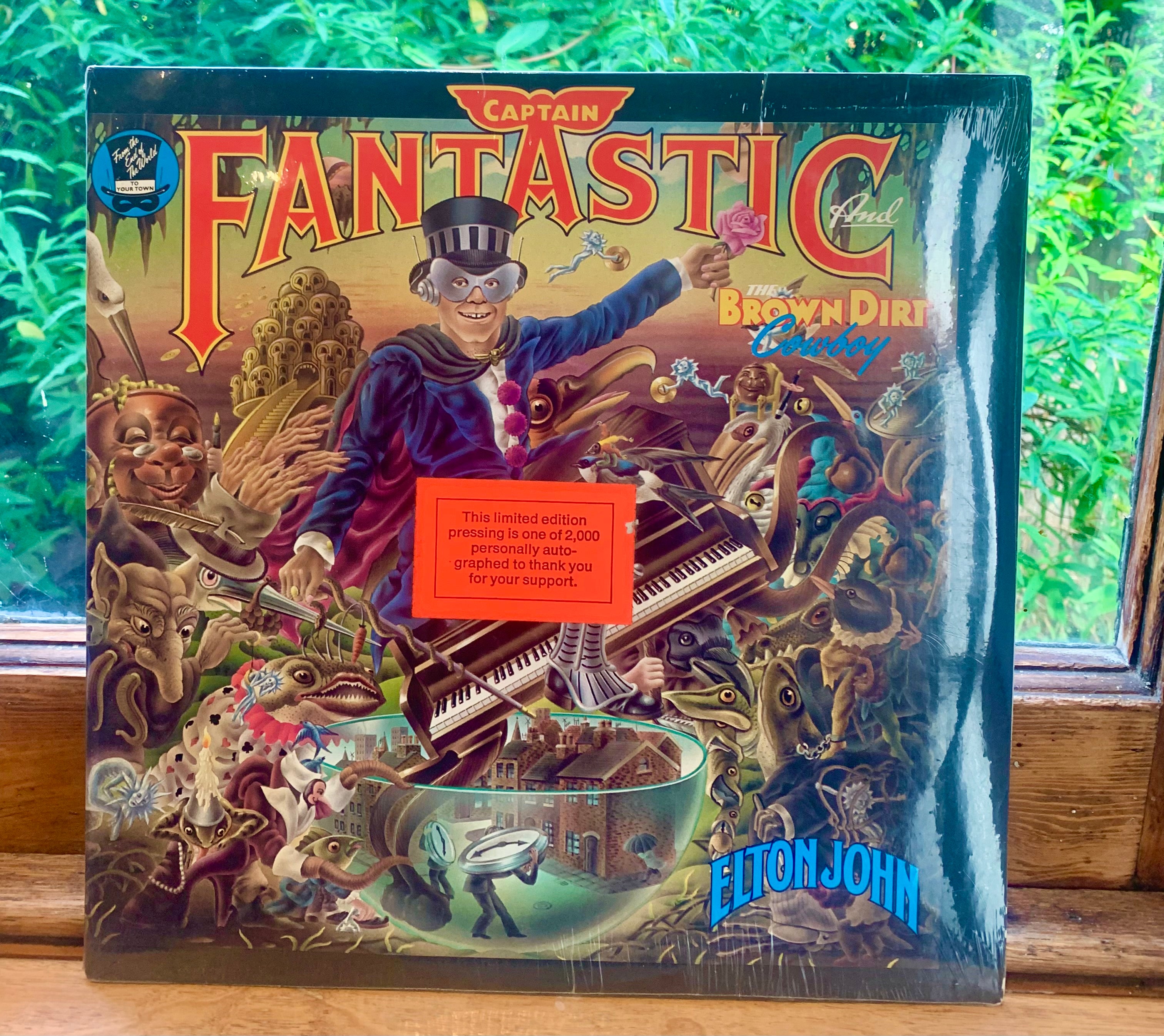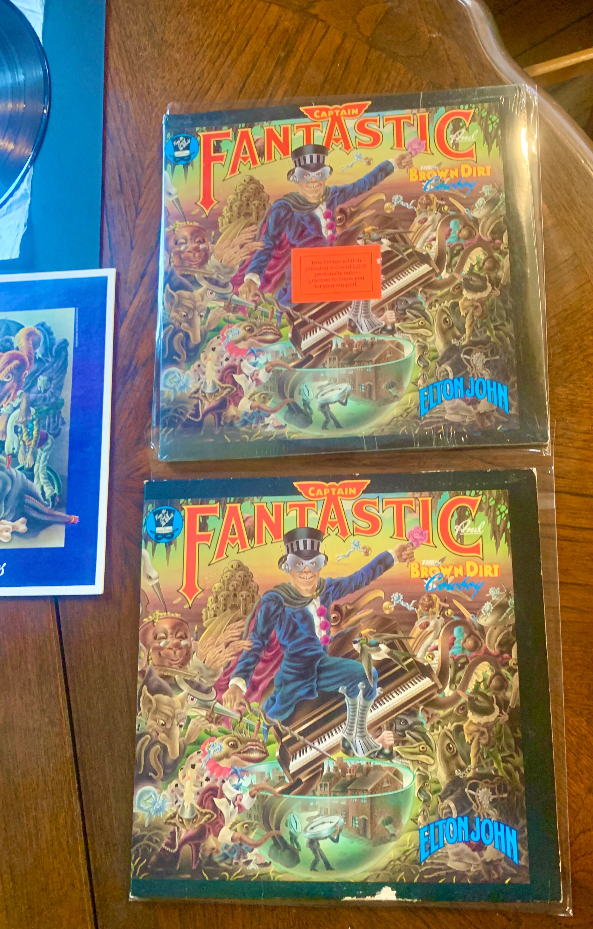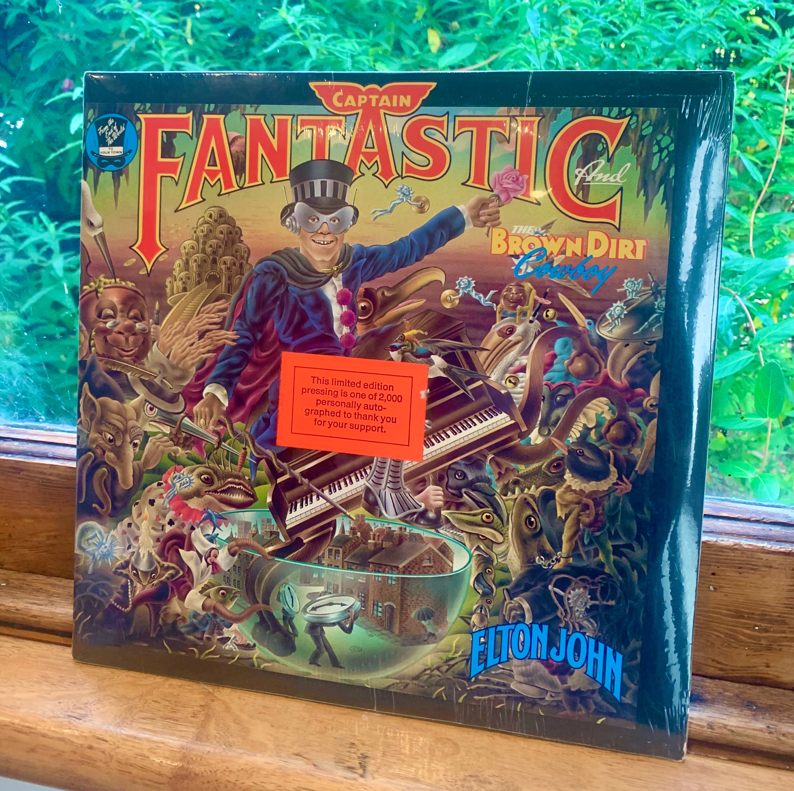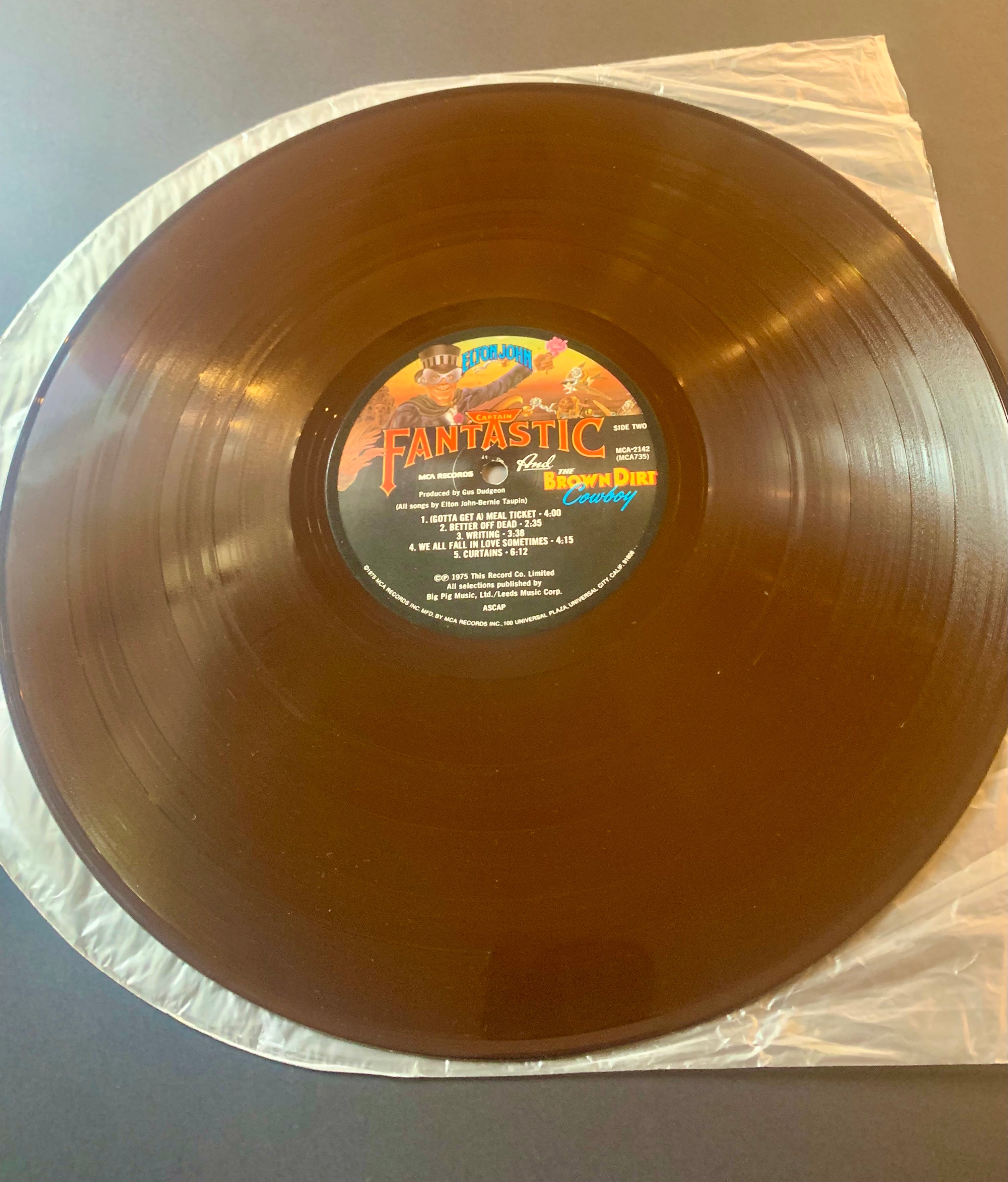 Here is “Captain Fantastic and the Brown Dirt Cowboy” by Elton John. This is a very rare MCA Limited Edition, only 2000 were made in 1975. The album is said to be the holy grail of Elton John Albums. Most copies were given to friends in appreciation of their support during his early years on his road to fame and success.