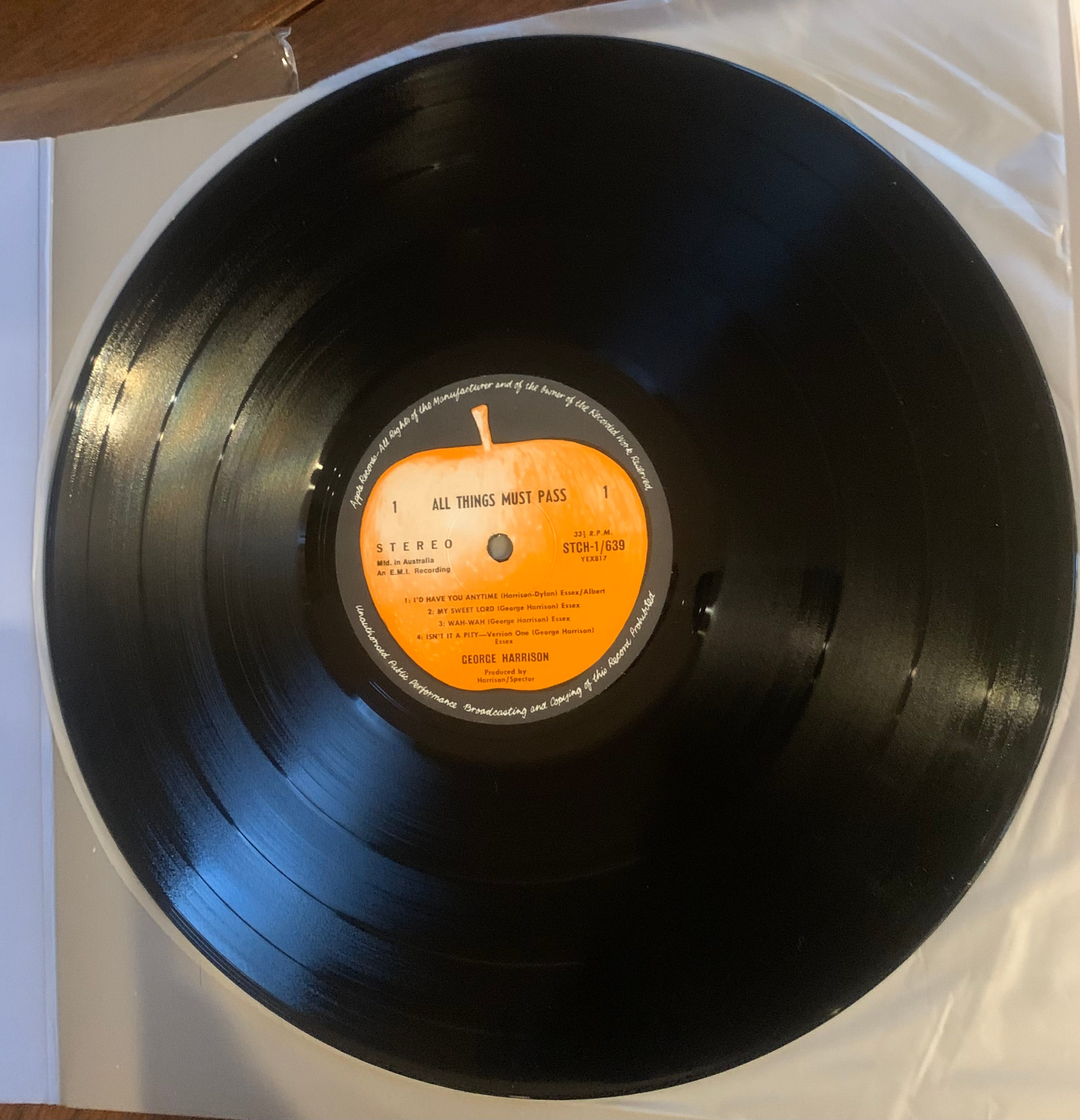The Incredible George Harrison’s - (The Beatles) - All Things Must Pass. This Australian 1970 original is incredible. I swear it’s never been played. It’s a 3 Vinyl Set and includes pristine poster.